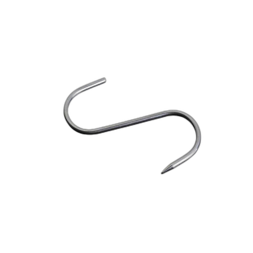 Gancho tipo S en acero inoxidable. Medidas: 15 cm largo, curvas 6×6 cm. Venta por unidad.